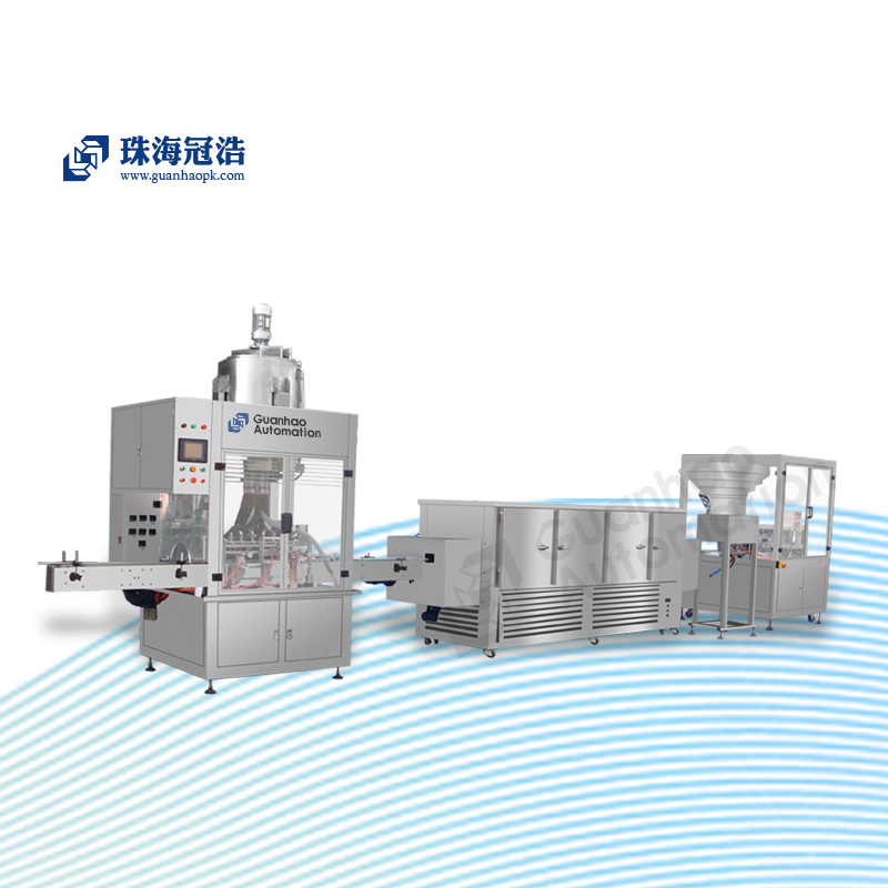 由6頭灌裝機、5通道冷凍機、卡盤式外蓋旋蓋機、三型電磁感應(yīng)鋁箔封口機、PET盒半自動鋁箔封切機組成,生產(chǎn)線各種機械參數(shù)可根據(jù)客戶需求訂做。